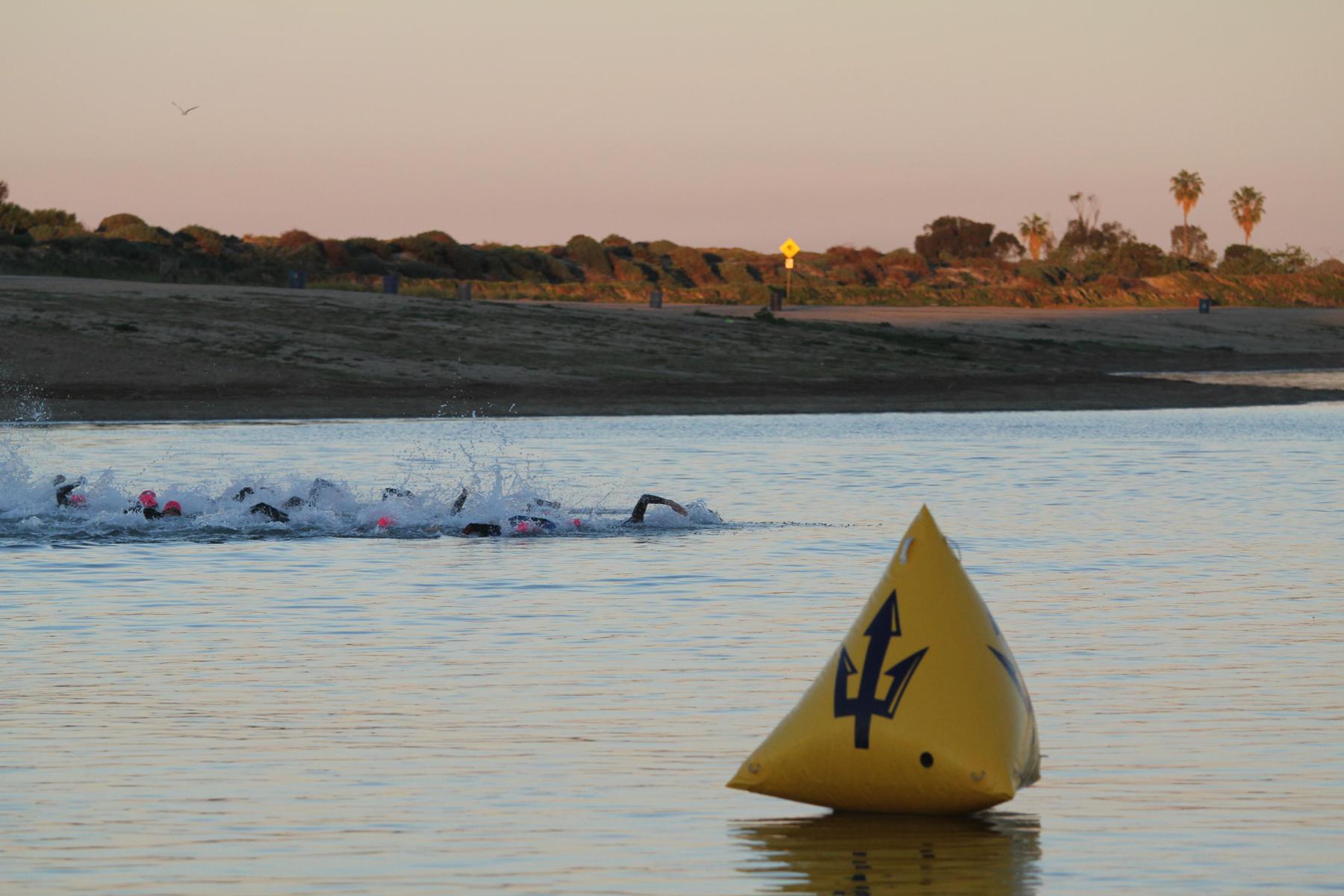 Tritonman will be held rain or shine. While San Diego is lucky to have warm weather year-round, winter storms do happen. The City of San Diego issues a water quality alert for all beaches and bays for 72 hours after significant rainfall, due to elevated bacteria levels. If this requires us to cancel our swim, the race will be held as a duathlon (run-bike-run). In case of minor/moderate rainfall, we may still be able to host our swim depending on bacteria levels, and we will keep this website updated accordingly.
